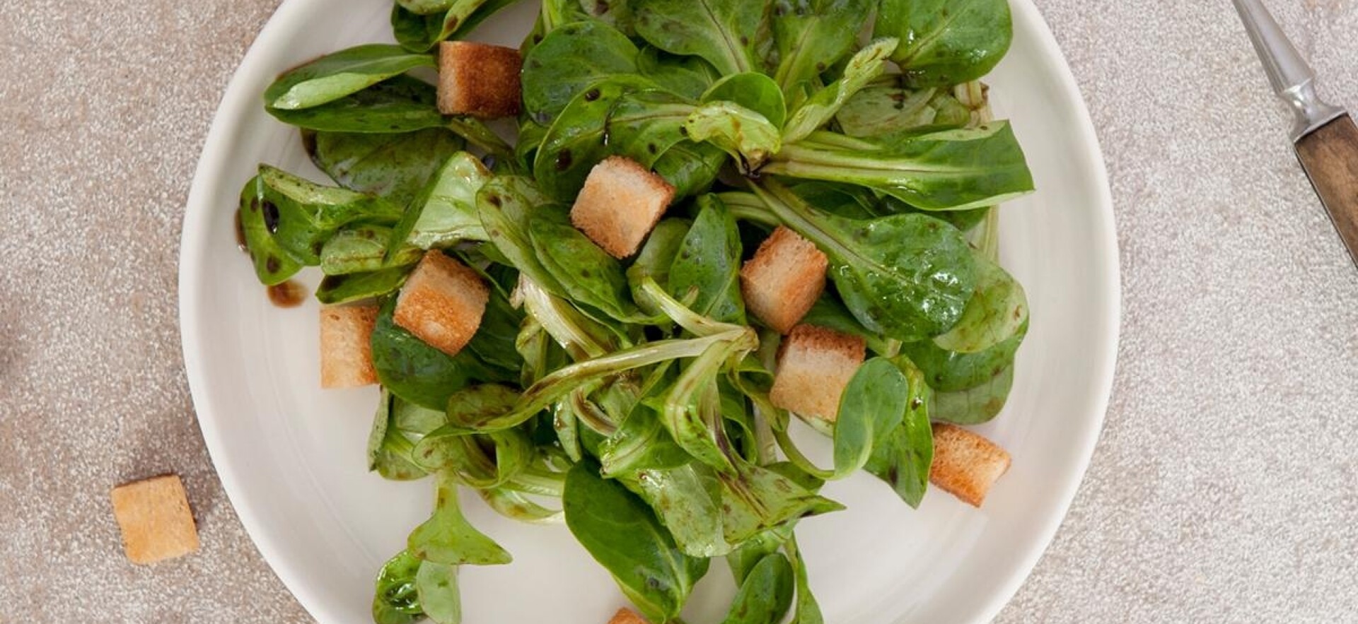 Zum Feldsalat mit seinem kräftigen, nussigen Geschmack passt auch ein kräftiges, nussiges Dressing. Wir beginnen mit einem guten Balsamico, Zucker, Salz und einem Schuss „Verdünner“ – das kann etwas Orangensaft, Rotwein oder Traubensaft sein, ganz nach Gusto. Diese Mischung schüttelt oder rührt man solange, bis sich Zucker und Salz komplett aufgelöst haben.